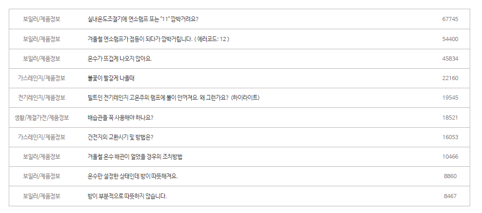 린나이 홈페이지 고객지원 페이지에서는 동영상가이드, 많이하는질문, 사용설명서를 제공하여 서비스센터 방문이나 AS신청 없이 최대한 문제를 해결할 수 있도록 지원하고 있습니다.