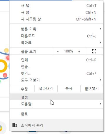 1. 크롬 우측상단에서 더보기-> 설정 클릭